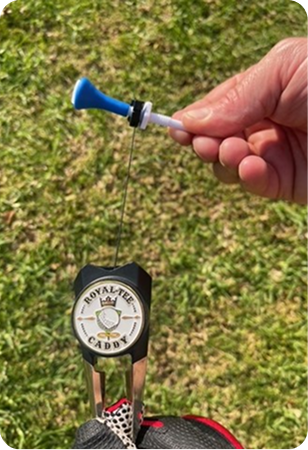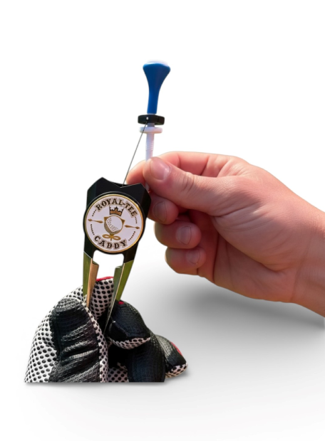 Introducing the RoyalTee Caddy, a patent-pending multi-functional tool designed to improve on-course performance by helping you align, set consistent tee height, and streamline many routine golf actions. Engineered with precision and built to endure the rigors of the course, the RoyalTee Caddy is your all-in-one on-course companion.